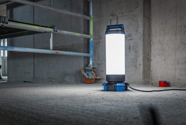 Robuster LED-Baustrahler für Innen- und Außenbereiche mit 360°-Rundumbeleuchtung. Die Farbtemperatur ist flexibel zwischen 3000 K, 4500 K und 6500 K einstellbar, vier Schaltstufen sorgen für optimale Lichtanpassung. Mit 16.500 Lumen Lichtleistung, stoßfestem Polycarbonat-Zylinder (IK08), ergonomischem Griff und IP54-Schutz eignet sich der Strahler ideal für anspruchsvolle Arbeitsumgebungen. Der Kühlkörper aus Aluminium sowie die montagefreundliche Aufnahme auf DIN-Zapfen (Ø 25–32 mm) machen das Gerät besonders vielseitig.